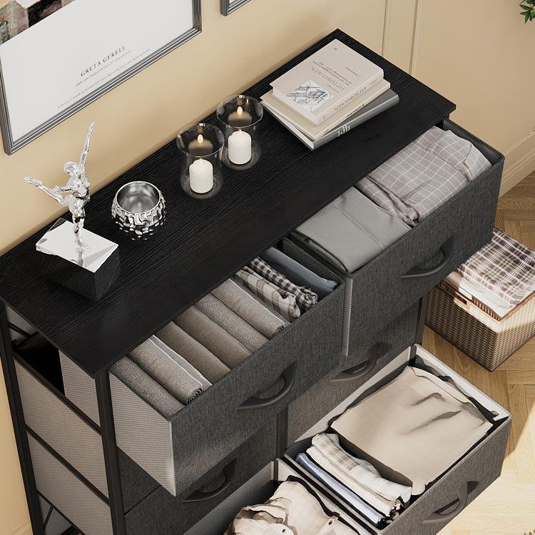 YITAHOME Szövetes Ládákos Komód - 8 Ládás Magas Tárolókomód és Hálószobai Rendezőskád